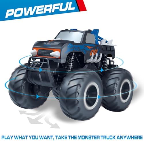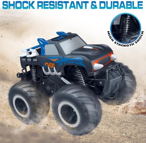 • WATERPROOF MONSTER TRUCK TOYS: Whether indoors or outdoors, the truck can easily conquer various terrains: like beach, swimming pool, land, stone road, beaches, and grasslands even in the water… will offer an exciting and versatile experience for kids. Nice presents for kids ages 6 to 12./// The Remote is not waterproof !!!