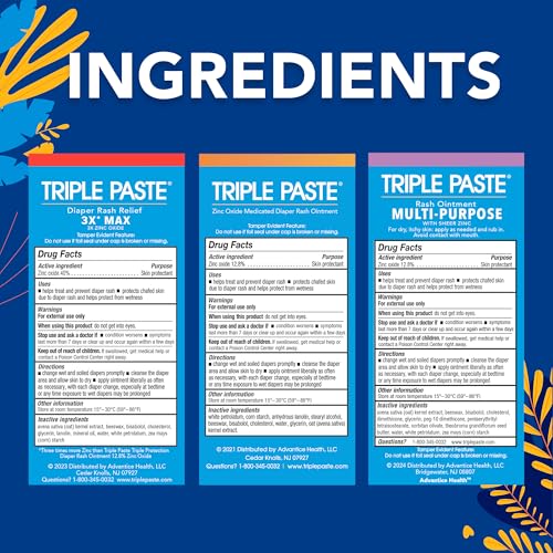 • Triple Paste is celebrated by parents who simply want the best for their baby’s delicate skin; store in your baby’s diaper bag for on-the-go ease with other baby essentials